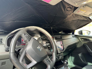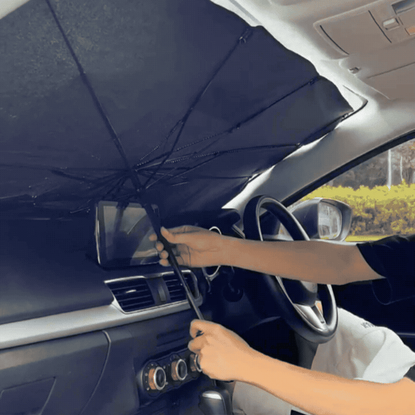 Nuestro parasol tipo sombrilla plegable transforma el calor en comodidad, protegiendo tu auto del sol y alargando su vida útil con facilidad. Descubre la tranquilidad de un vehículo fresco y seguro.
